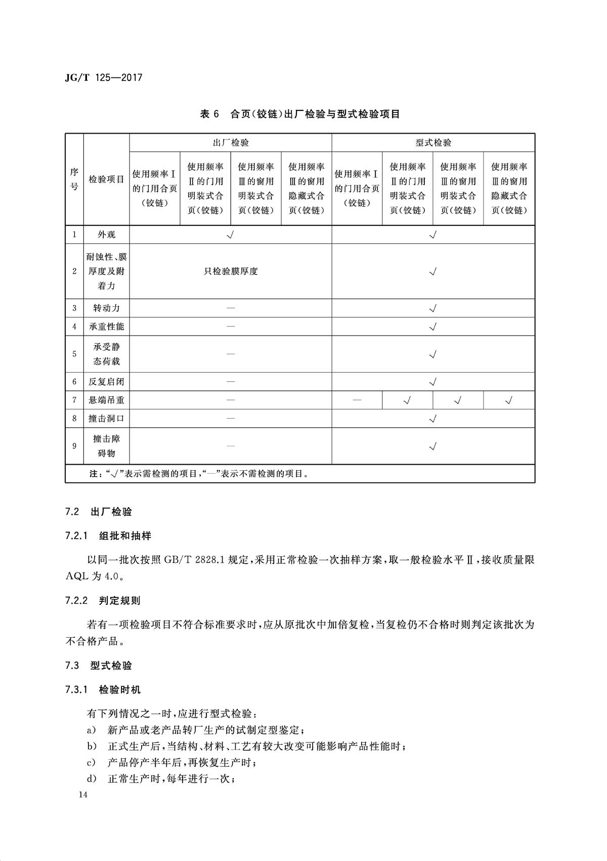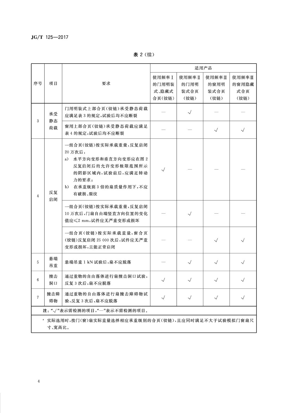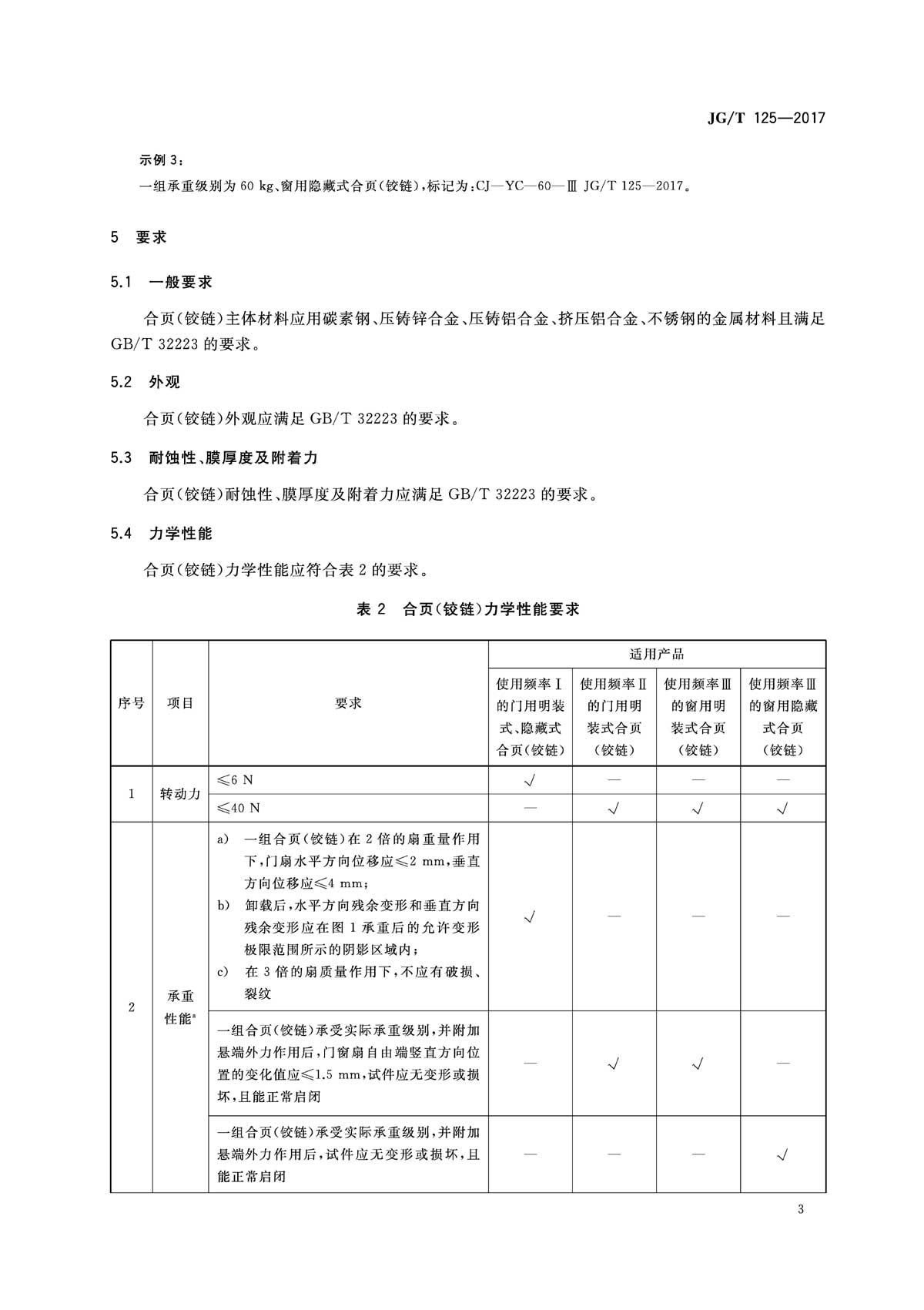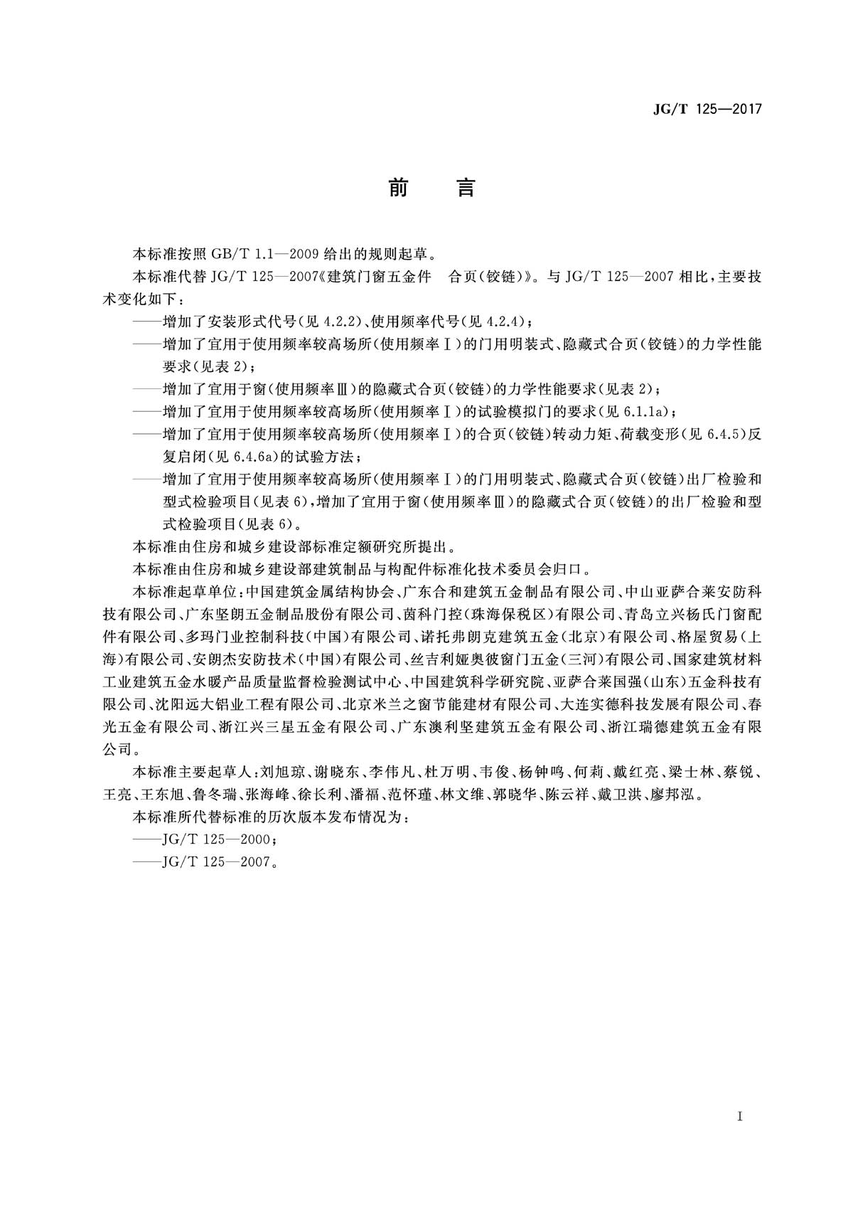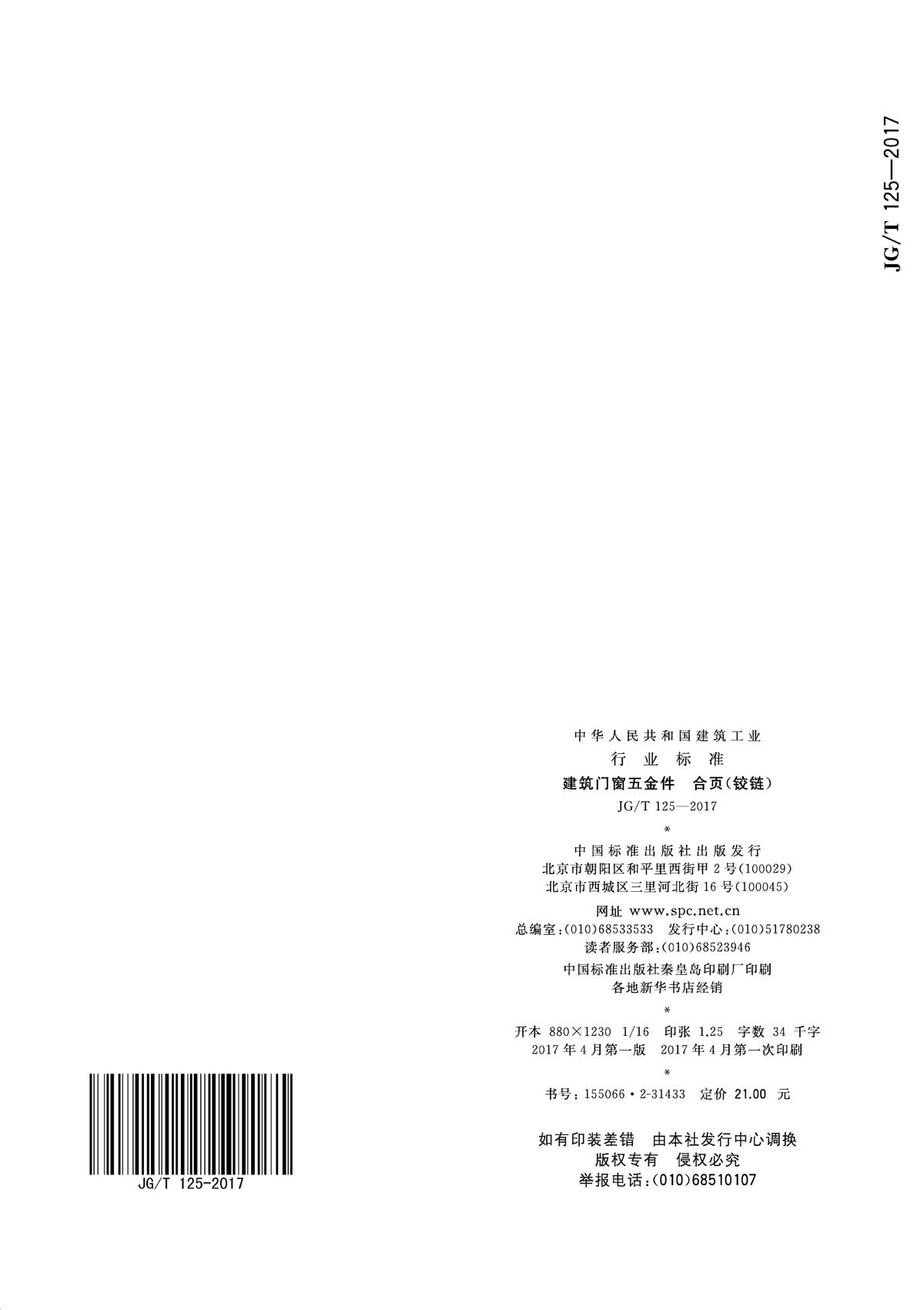 合頁(鉸鏈)行業(yè)標準 JG/T125-2017